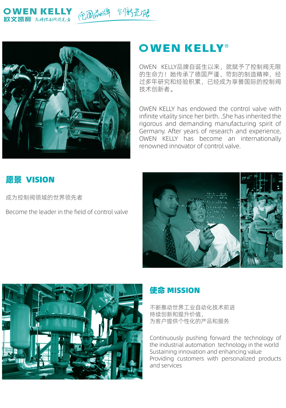 正因如此,产品以品质和精致的外观赢得用户,经过多年的积累,OWEN KELLY已经成长为自动化系统及流体控制领域,以研发生产执行机构、控制阀为主,以及提供各类自控阀及管路系统配套产品的专业供应商和技术型服务商。